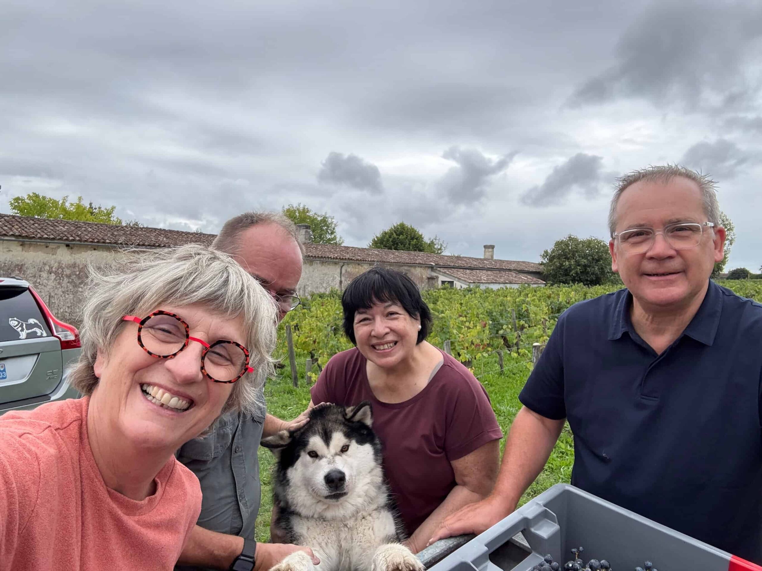 Cette année, nous n’étions pas seuls. Nos amis Marc et Réjane, récemment installés sur la rive droite après avoir vécu dans une multitude de pays (nous les avons rencontrés aux États-Unis), ont traversé la Gironde pour nous donner un coup de main.