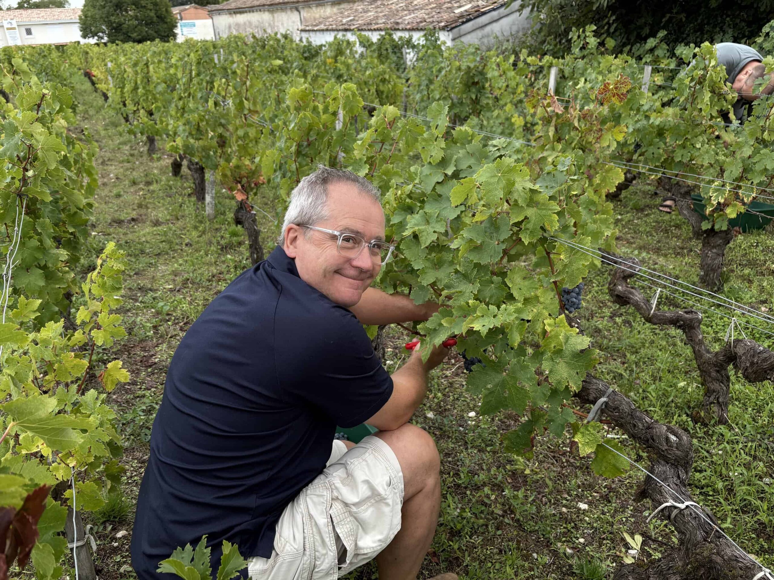 C’est difficile de prédire la date exacte – ça dépend de la météo, du taux de sucre, de nombreux facteurs qui changent chaque année. Mais avec le réchauffement climatique, les vendanges arrivent de plus en plus tôt. Le week-end après le Marathon des Châteaux du Médoc est généralement le bon moment. Pour les tous petits producteurs comme nous c’est toujours un samedi